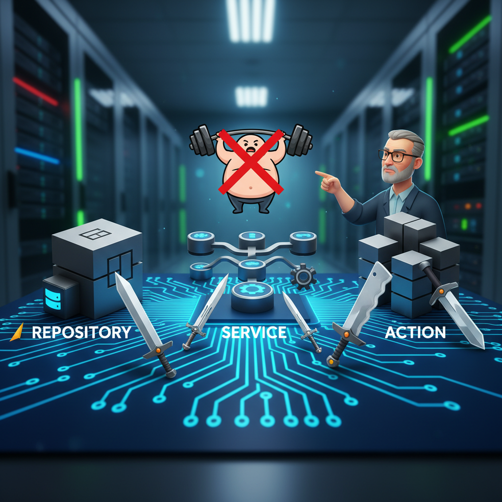 今天,我不想跟你談太多空泛的理論,我想直接帶你上戰場,解析三種在 Laravel 世界裡最常被用來『減肥』的架構模式:Repository、Service 和 Action。它們不是互斥的,而是可以協同作戰的武器。搞懂它們各自的守備範圍,你才能為你的專案選對『屠龍刀』,打造出可維護、可擴展、甚至可以傳承的程式碼藝術品。